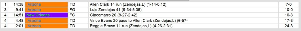In the second half, Arizona extended their lead with a 41-yard field goal by Luis Zendejas in the third quarter. New Orleans managed their only points of the game early in the fourth with a 20-yard field goal from Giacomarro, but the Brass couldn’t find the end zone. Vince Evans redeemed himself late, connecting with Allen Clark for a 20-yard touchdown pass, followed by Reggie Brown’s 11-yard rushing score to seal the victory.