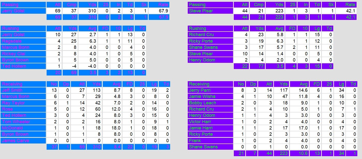 The Las Vegas Ace celebrated a milestone in their inaugural season, securing their first franchise victory in a hard-fought battle against the New Orleans Brass. Despite being underdogs, Las Vegas capitalized on key moments, including three touchdown passes from Jerry Golsteyn. The game began with Golsteyn connecting on a short touchdown to Jeff Smith, putting Las Vegas up 7-0. New Orleans countered in the second quarter with a stunning 75-yard interception return by Reggie Phillips, but they missed the extra point. Golsteyn then led a late first-half drive, finding Tom Wheeler for a 9-yard touchdown to extend the Ace’s lead to 14-6.