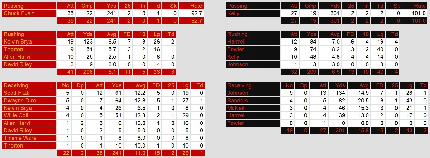 Philadelphia, despite their 2-8 record, put up a strong fight. Kelvin Bryant was the star for the Stars, rushing for 123 yards and two touchdowns, while quarterback Chuck Fusina threw for 241 yards and a touchdown. The Stars battled back multiple times, cutting Houston’s lead to just one point on two occasions, and a late fourth-quarter touchdown pass from Fusina to Dwayne Dixon made it a one-score game. However, the Stars’ defense couldn’t contain Houston’s relentless offensive attack in the final minutes.