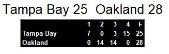 Tampa Bay 25 Bandits, Oakland Invaders 28