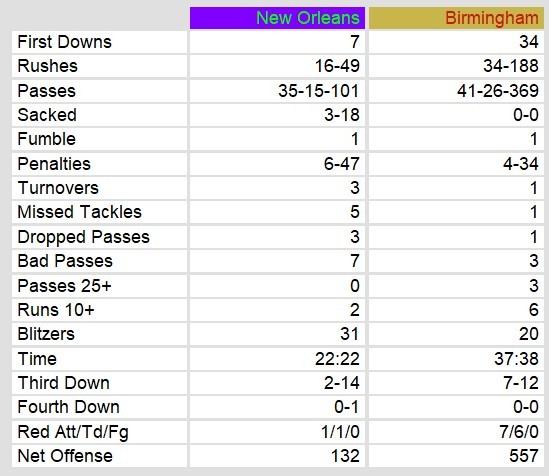 New Orleans Brass 7, Birmingham Stallions 59