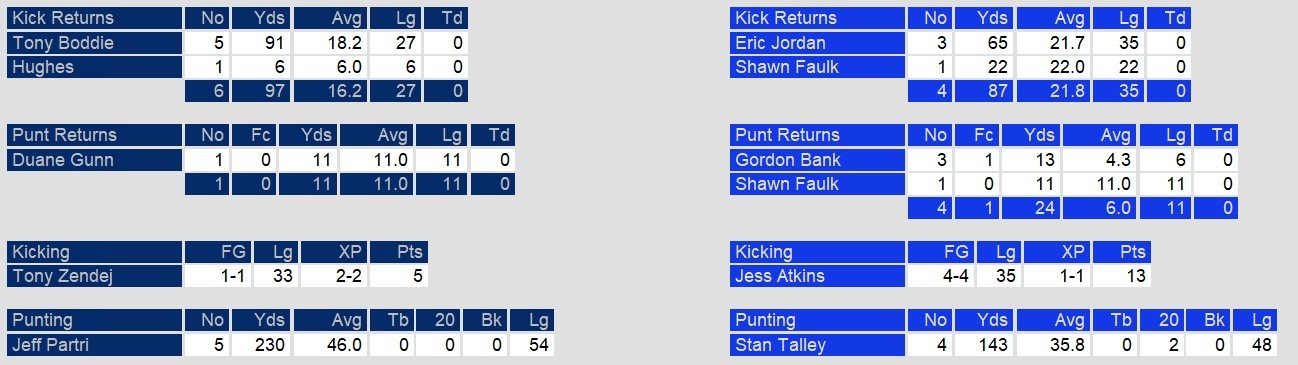 The Oakland Invaders secured a crucial 27-17 victory over the Los Angeles Express in Week 11, improving to 6-5 on the season. Oakland quarterback Craig Sundberg led the way, completing 19 of 28 passes for 241 yards and a touchdown. Running back John Williams contributed significantly with 93 rushing yards and a key touchdown in the fourth quarter, while kicker Jess Atkinson was flawless, hitting all four of his field goal attempts. The Invaders’ defense stood strong, forcing two turnovers and keeping Los Angeles’ offense largely in check.