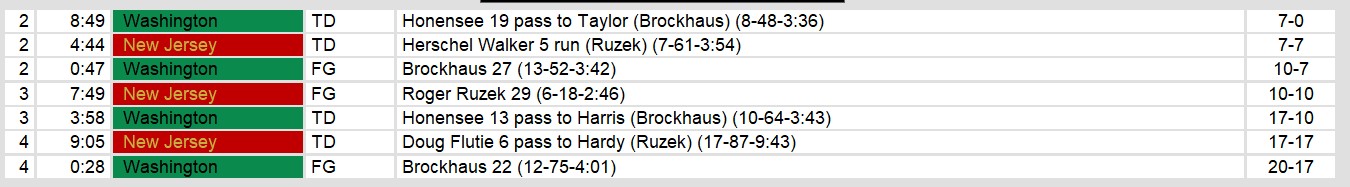 New Jersey’s Herschel Walker was a force, rushing for 114 yards and a touchdown, while Doug Flutie delivered a clutch fourth-quarter drive capped by a 6-yard touchdown pass to Sam Hardy to tie the game at 17. However, penalties and turnovers marred the Generals’ performance, particularly during crunch time. Their defense struggled to stop Washington’s methodical final drive, setting up Dan Brockhaus for his decisive 22-yard field goal.