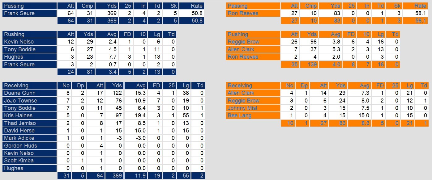 The Arizona Wranglers leaned on a stifling defense and capitalized on critical turnovers to edge the Los Angeles Express, 20-14, in a gritty Week 14 matchup at Sun Devil Stadium. Defensive back David Martin set the tone early, intercepting Los Angeles quarterback Frank Seurer and returning it 41 yards for a touchdown just over a minute into the game. Arizona added another defensive score in the second quarter when Bret Clark scooped up a fumble and dashed 33 yards to the end zone, giving the Wranglers a 14-7 halftime lead.