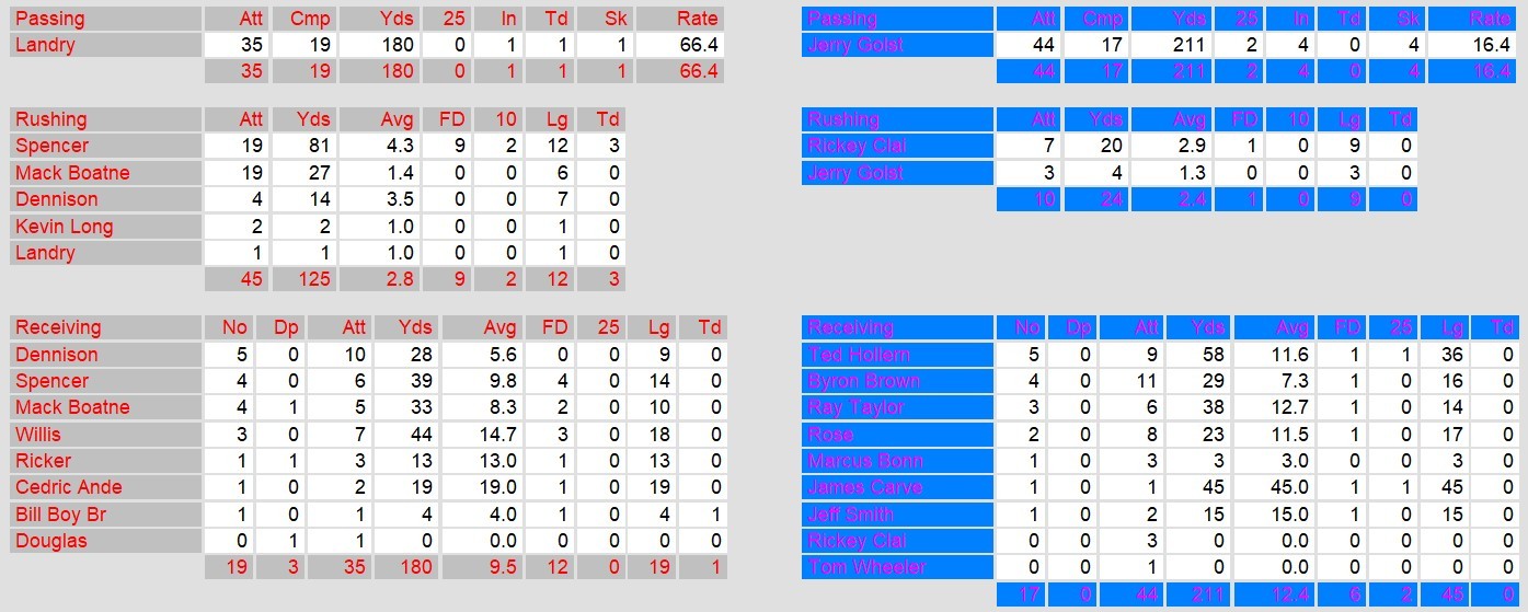 The Blitz wasted no time establishing control, with Spencer capping a short 29-yard drive with an 8-yard touchdown run early in the first quarter. Chicago extended their lead to 10-0 with a field goal, keeping the Ace scoreless until late in the second quarter. Las Vegas quarterback Jerry Golst struggled against relentless pressure, throwing four interceptions and finishing with a dismal passer rating of 16.4. Despite a glimmer of hope in the fourth quarter—a 19-yard fumble recovery touchdown by Ace linebacker Welch—the home team failed to generate any sustained momentum.
