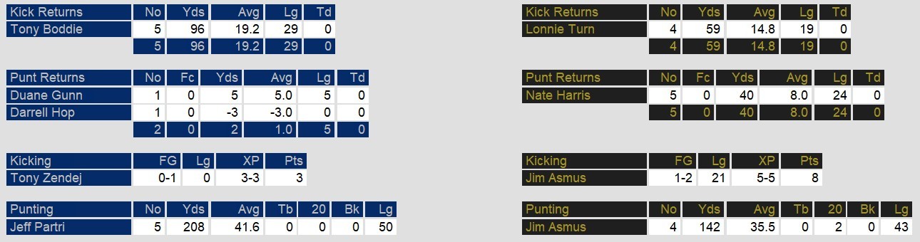 In a high-stakes matchup at a frigid Mile High Stadium, the Denver Gold capitalized on a dominating ground game and timely defensive plays to defeat the Los Angeles Express 38-21. Denver struck early and decisively, opening with a marathon 17-play, 77-yard drive capped by Bob Gagliano’s 3-yard touchdown scramble. Moments later, Nate Miller’s 35-yard interception return extended the lead to 14-0. Despite the cold and a resilient LA defense, Denver maintained their offensive rhythm, with Bill Johnson pounding his way to two rushing touchdowns and a game-high 158 yards on 27 carries.