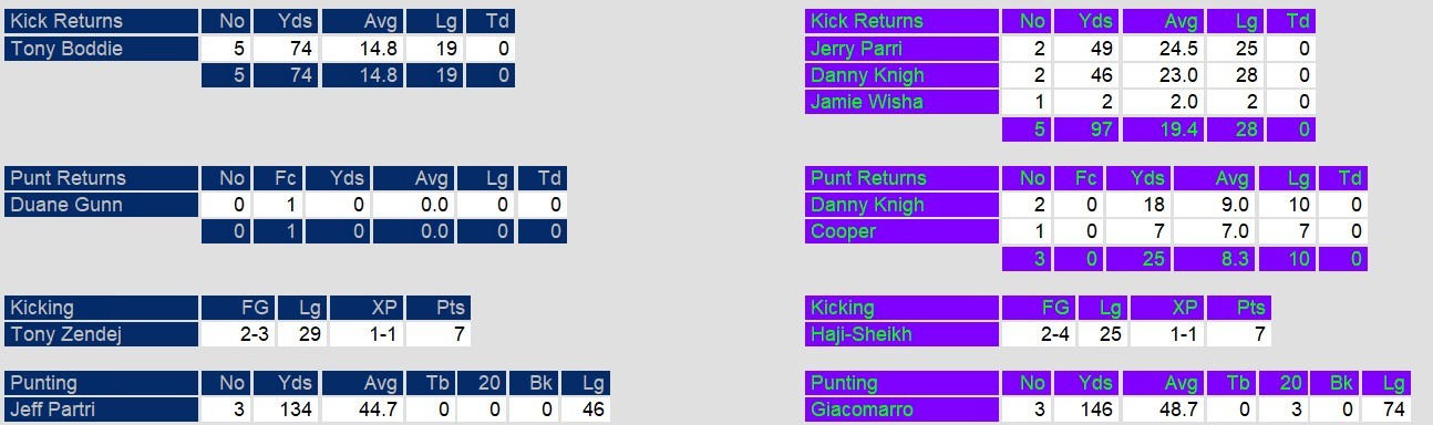 The tone was set early, as both teams exchanged blows in a tightly contested first half. The Express struck quickly with Steve Young finding Duane Gunn for a dazzling 68-yard touchdown, but the Brass responded with a Henry Odom touchdown run and an Ed Jackson safety to take a 12-10 lead at halftime. New Orleans extended their advantage in the third quarter with a field goal, but Los Angeles answered in the fourth with another Young-to-Gunn connection, briefly giving the Express a one-point lead.