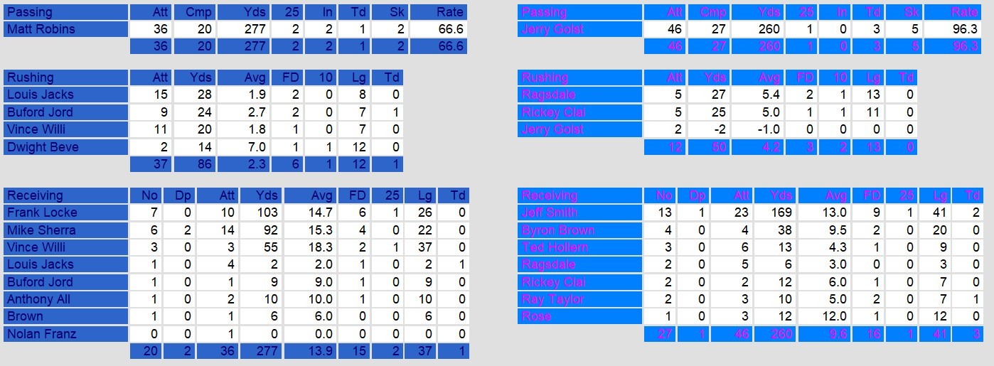 The Breakers appeared in control early, dominating time of possession and building a 17-0 halftime lead. Quarterback Matt Robinson’s precision passing set up a two-yard touchdown to Louis Jackson and a Buford Jordan seven-yard rushing score. Boston added a field goal early in the third quarter, but their offense stalled in the second half. Costly turnovers and penalties derailed their rhythm, allowing the Ace an opportunity to mount their improbable comeback.