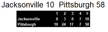 Jacksonville Bulls 10, Pittsburgh Maulers 58