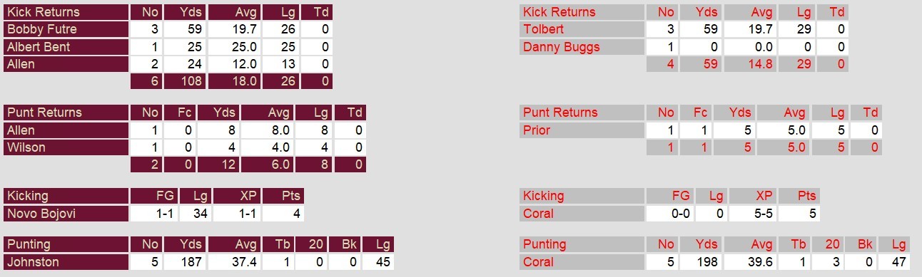 Chicago struck early and often, with Spencer finding the end zone twice in the opening quarter on runs of 21 and 8 yards. Quarterback Greg Landry orchestrated an efficient offense, highlighted by a 94-yard scoring drive capped by a touchdown pass to Ron Willis late in the first half. The Blitz defense complemented the offensive effort, forcing three turnovers and limiting Michigan quarterback Whit Taylor to a modest 214 yards and one touchdown on 37 attempts.