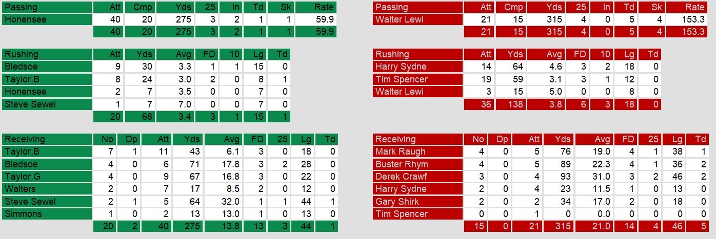 The Memphis Showboats showcased their offensive firepower in a 45-21 triumph over the Washington Federals at Liberty Stadium in the first round of the 1985 USFL playoffs. Quarterback Walter Lewis delivered a masterclass, throwing for 315 yards and five touchdowns while earning MVP honors. Memphis seized control early, with Lewis connecting twice with Derek Crawford for first-quarter touchdowns, including a 46-yard bomb on their opening drive. The Federals struggled to find a rhythm, punting three times in the first half while Memphis built a 21-7 halftime lead.