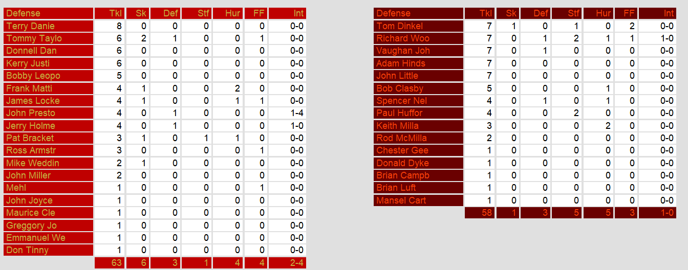 Jacksonville fought back behind quarterback Ed Luther, who threw for 256 yards and three touchdowns, including two to Larry Mason. The Bulls chipped away at the deficit with two third-quarter field goals and a pair of fourth-quarter touchdowns, cutting the lead to 38-35 late in the game. However, Walker sealed the win with his sixth and final score—a 1-yard plunge—with just 1:50 remaining. The Generals’ defense came up big late, intercepting Luther twice, including a game-clinching pick by John Preston in the final minute.