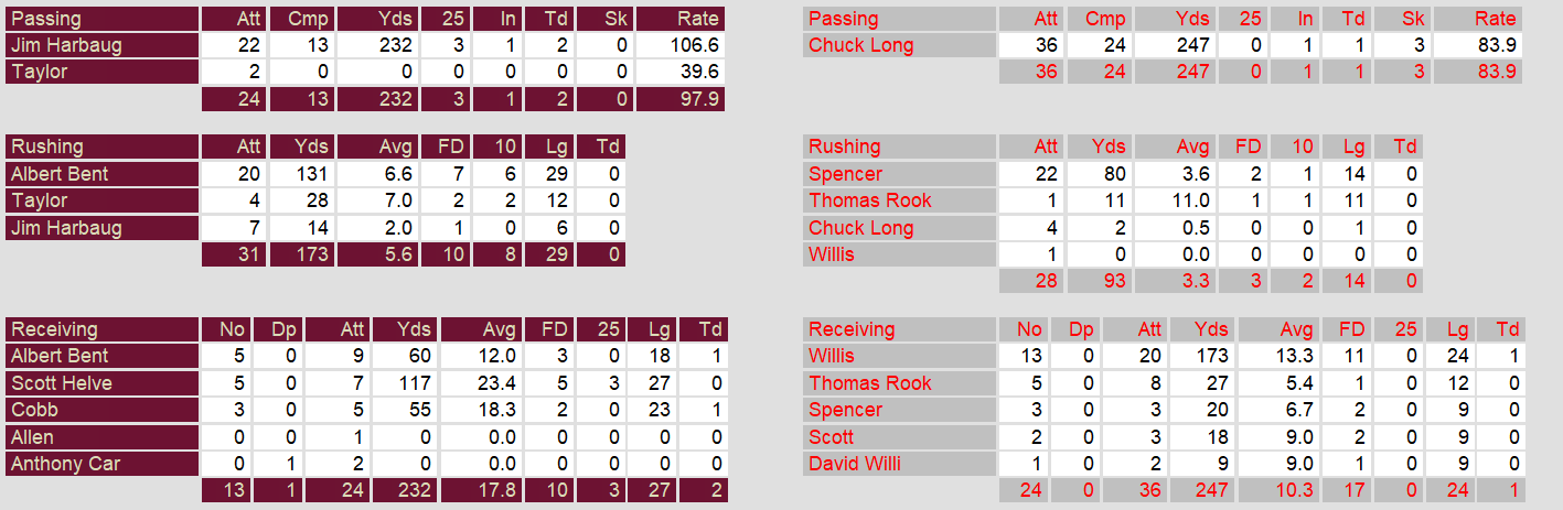 - Ground Control: Michigan outrushed Chicago 173-93, with Bentley accounting for 76% of their rushing yards.