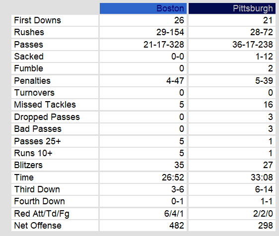 • Injury Watch: Pittsburgh lost FB Jim Brown pregame, while Boston emerged unscathed ahead of a Week 2 showdown with New Jersey.