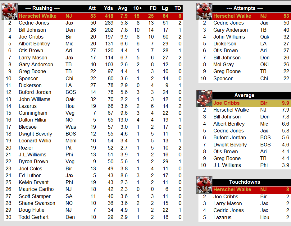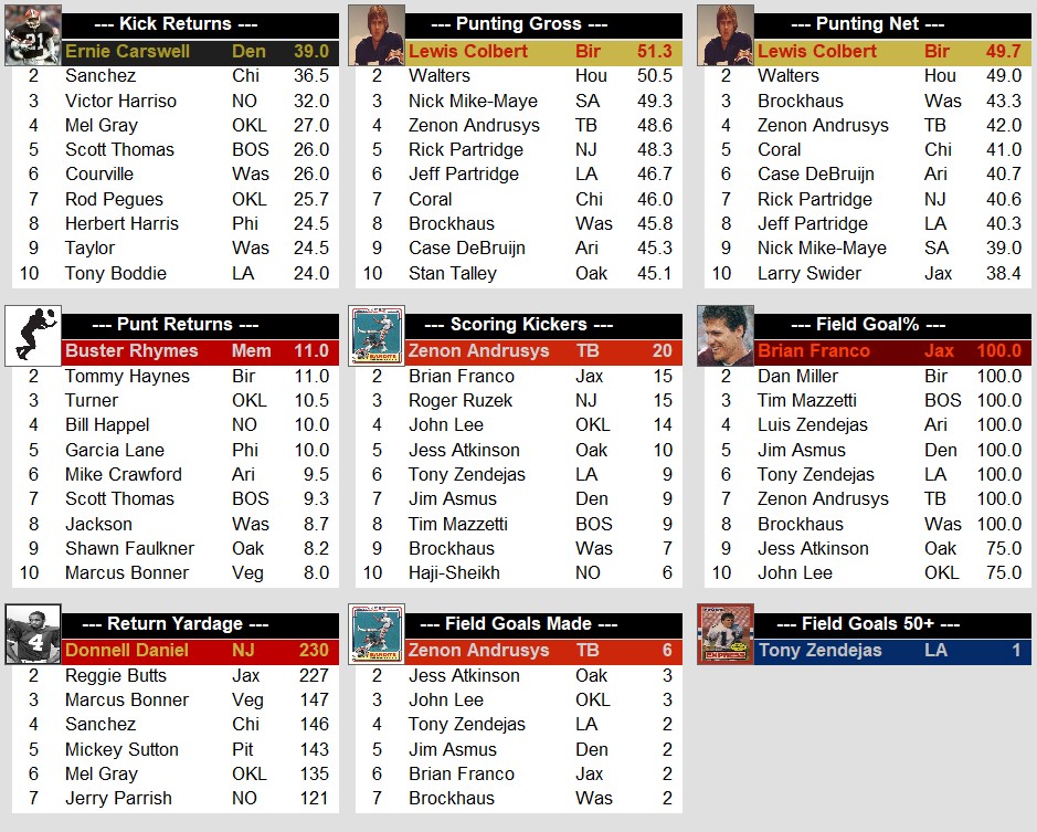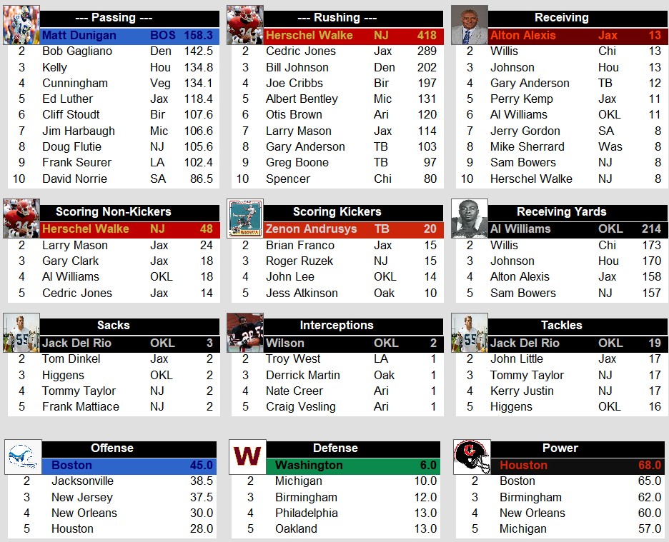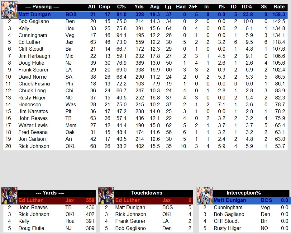 USFL 1986 Week 2 Stat Leaders Stats Weekly Stats June 17, 2025June 17, 2025 Snapshot Passing Rushing Receiving Defense Special Teams Team Stats