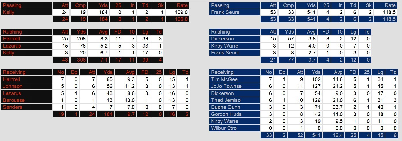 Los Angeles quarterback Frank Seurer put on a passing clinic, throwing for a staggering 541 yards and six touchdowns – including three to receiver Thad Jemison (126 yards). The Express mounted a furious fourth-quarter comeback, scoring three touchdowns in the final 4:48, with Seurer’s 20-yard strike to Jemison cutting the deficit to 50-48 with 42 seconds remaining. However, Houston’s defense came up with the game-sealing interception when linebacker Kiki DeAyala picked off Seurer’s two-point conversion attempt that would have tied the game. The teams combined for 1,090 total yards in a contest that featured 14 touchdowns and just three punts.