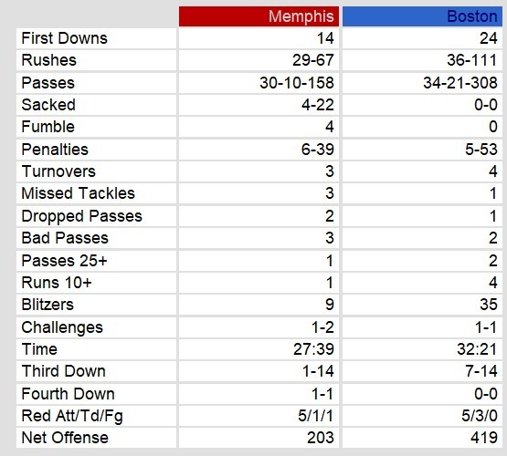 Memphis showed brief signs of life early, taking a 3-0 lead on Alan Duncan’s 48-yard field goal and briefly regaining the advantage 10-7 in the second quarter on Lewis’ 11-yard touchdown pass to Greg Moser. However, the Showboats’ offense completely stalled thereafter, managing just 203 total yards while committing three turnovers. Boston’s defense, led by Marcus Marek’s 10-tackle, three-forced fumble performance, completely shut down Memphis’ rushing attack (67 yards on 29 carries) and kept constant pressure on Lewis. The Breakers’ special teams also contributed, with Scott Thomas averaging 25.7 yards on kick returns and 12.3 yards on punt returns to consistently provide good field position.