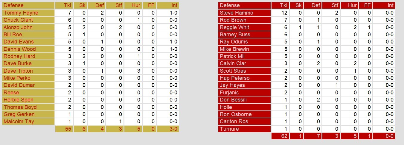 Quarterback Cliff Stoudt managed the offense effectively, completing 22 of 48 passes for 249 yards and a touchdown to Joey Jones, but it was the Stallions’ ground game and swarming defense that stole the show. Birmingham racked up 514 yards of total offense and held the ball for nearly 36 minutes, wearing down a Memphis defense that struggled with missed tackles and couldn’t find answers for Cribbs. Meanwhile, the Stallions’ pass rush harassed Memphis quarterback Walter Lewis all game, sacking him six times and intercepting three passes—including picks by Tommy Haynes, David Evans, and Dennis Wood.