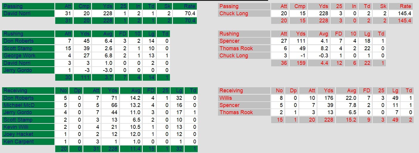 San Antonio opened the scoring with a clock-chewing 14-play drive capped by George Works’ four-yard plunge, but the Blitz took command from there. Long found Willis for a 30-yard strike to even the game, and Spencer’s one-yard touchdown dive late in the second quarter gave Chicago a lead they never relinquished. Spencer finished with 111 yards on 27 carries and also caught a touchdown, while Long completed 15 of 20 passes for 228 yards, two scores, and no interceptions. Kicker Coral added a pair of third-quarter field goals as Chicago padded their cushion.