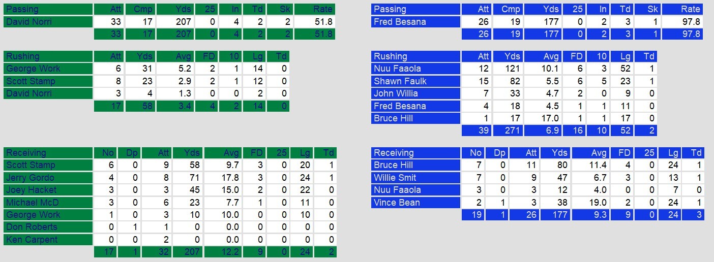 Dateline: Monday, March 9, 1986. On a pleasant evening in Oakland, the Invaders beat the visiting Gunslingers handily. They wracked up over 270 yards rushing while holding San Antonio to only 58. They gained 25 first downs to Oakland’s 16. And, they outgained San Antonio 446 – 225.
