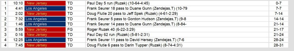 Dateline: Monday, March 10, 1986. On a frigid day in New Jersey, the Express and Generals duked it out in what promises to be a game talked about for years to come. With 4 lead changes, a defensive stop, and a deliberate 11 play drive to run out the clock, those in attendance were treated to one hell of a game.