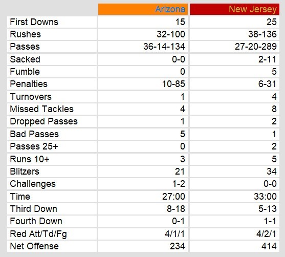 Arizona Wranglers 13, New Jersey Generals 23