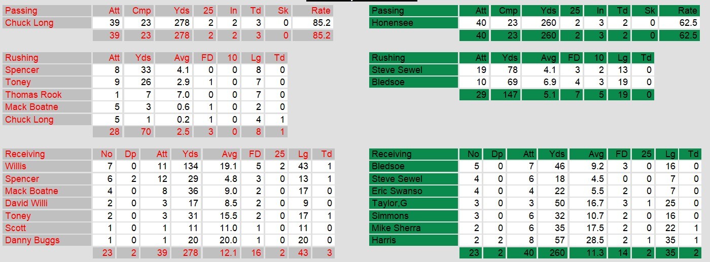 Dateline: Sunday, March 24, 1986. Chicago took care of business on the road against Washington in a battle between two teams who are trying to find some wins. Chicago quarterback Chuck Long provided all of the scoring with four touchdown passes. The game showed the promise that Chicago saw in Long when they took him to lead their team.