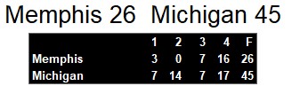 Michigan scored in every facet of the game. Their defense returned an interception and fumble for a touchdown. Albert Bentley returned a kickoff for a touchdown after Memphis cut the lead to 35-20. That return cemented the win for the first place Panthers.