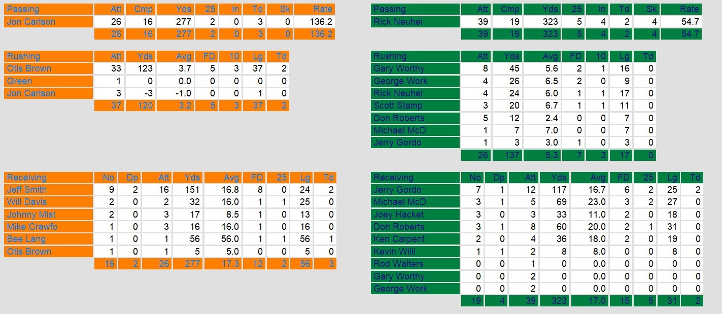 Dateline: Sunday, April 13, 1986. Arizona defeated a struggling San Antonio club late Sunday afternoon. Arizona brought a balanced attack with 277 yards passing and 3 touchdowns and 123 yards rushing and 2 touchdowns.