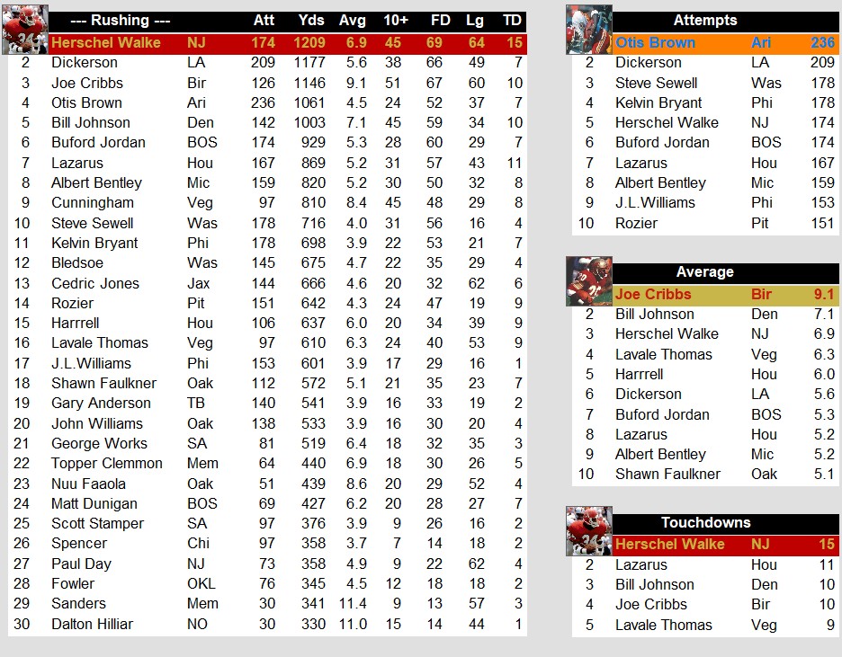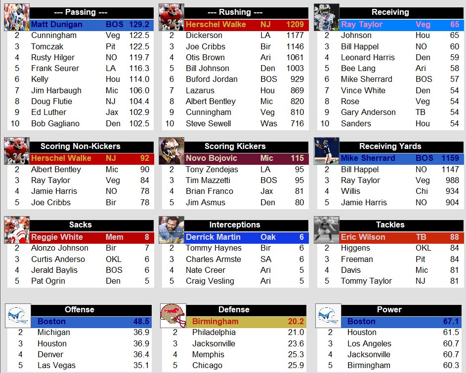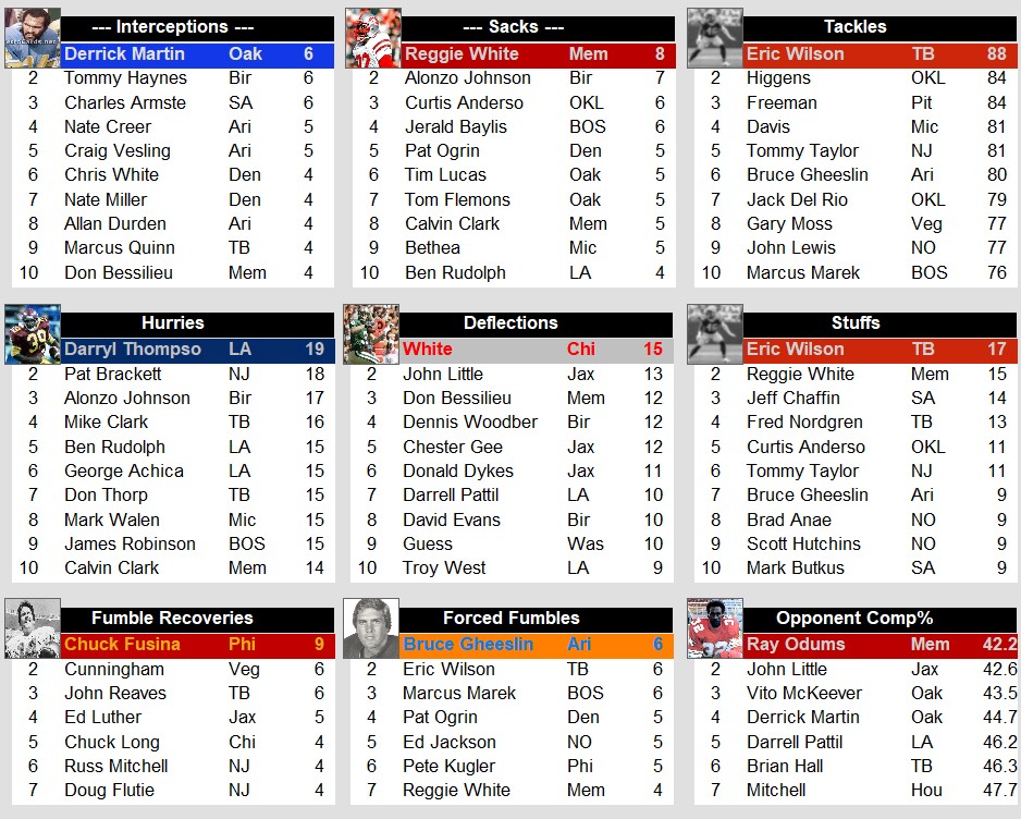 1986 Week 11 USFL Stat Leaders Stats Weekly Stats August 4, 2025 Snapshot Passing Rushing Receiving Defense Special Teams Team Stats