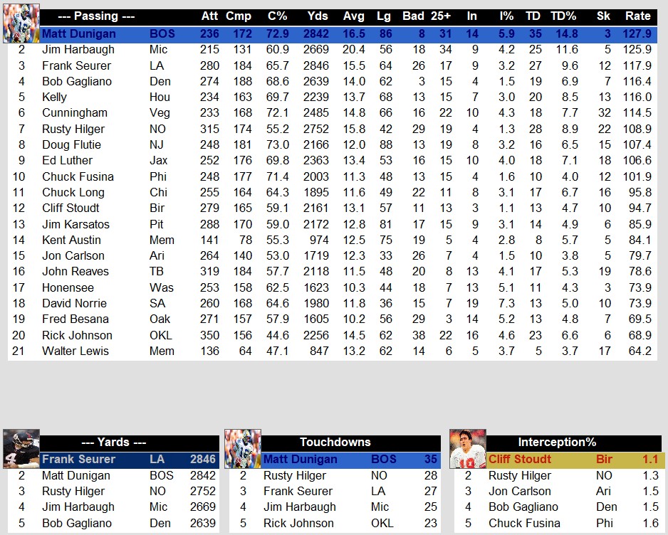 1986 Week 9 USFL Stat Leaders Stats Weekly Stats August 4, 2025 Snapshot Passing Rushing Receiving Defense Special Teams Team Stats