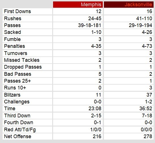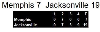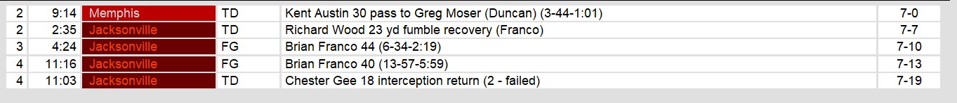 Dateline: Sunday, April 20, 1986. Jacksonville dominated with defense to defeat Memphis and run their win streak to 5 games. With only 2 field goals on offense, the defense scored two touchdowns on the day, a fumble and an interception return.