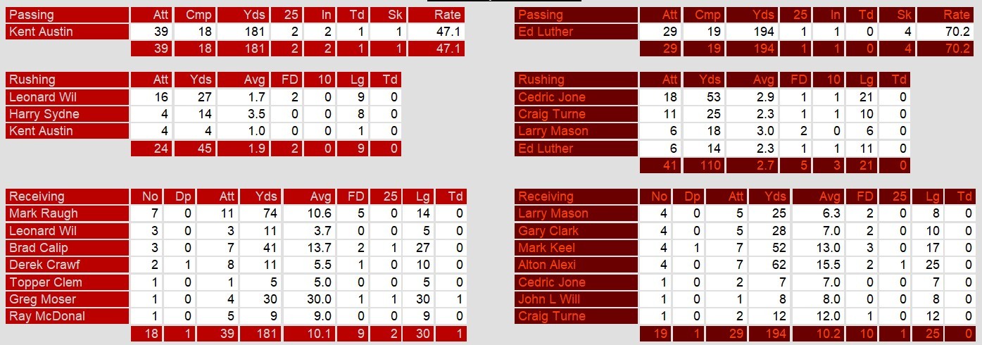In spite of the tough Memphis defense, led by Reggie White, the Showboats again fell. Their run game managed only 45 yards, leaving young quarterback Kent Austin unable to carry the team in spite of a decent effort.