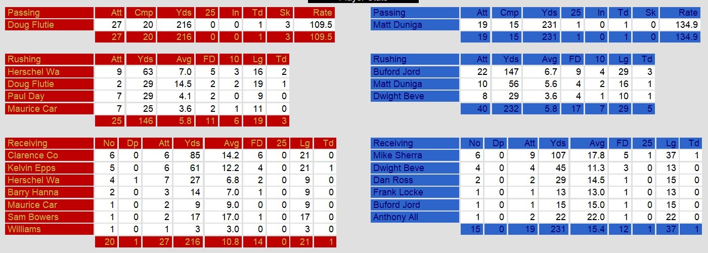 Dateline: Sunday, April 20, 1986. Boston wins again. The scary part this time is that Matt Dunigan had a below average game. He only threw the ball 19 times, completing 15 for 231 yards and only one touchdown. However, Buford Jordan rushed for 147 yards and 3 touchdowns in the game.