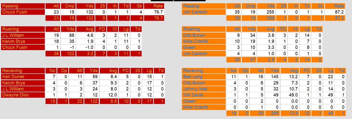 Arizona fared better everywhere except for the run game and scoreboard. They gained 67 yards rushing as a team and scored no touchdowns. Quarterback Jon Carlson threw for 255 and a touchdown late in the game, but it wasn’t enough.