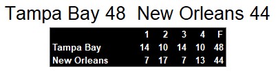 But, the Tampa run and pass game ground down New Orleans with a more balanced 3 touchdowns each. Hilger suffered some at the Tampa defense, too, enduring 8 sacks on the game. With the win, Tampa moves to 4-5 and within striking distance of the playoffs.