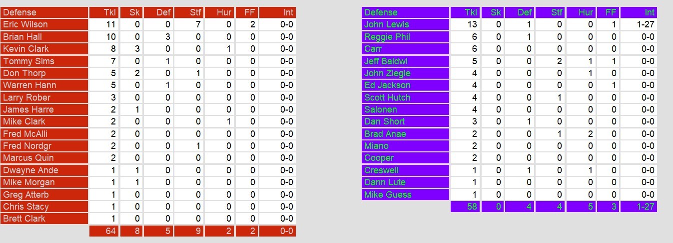 But, the Tampa run and pass game ground down New Orleans with a more balanced 3 touchdowns each. Hilger suffered some at the Tampa defense, too, enduring 8 sacks on the game. With the win, Tampa moves to 4-5 and within striking distance of the playoffs.