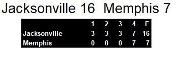 Jacksonville Bulls 16, Memphis Showboats 7