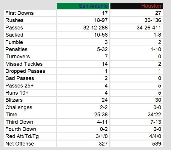 San Antonio Gunslingers 7, Houston Gamblers 66