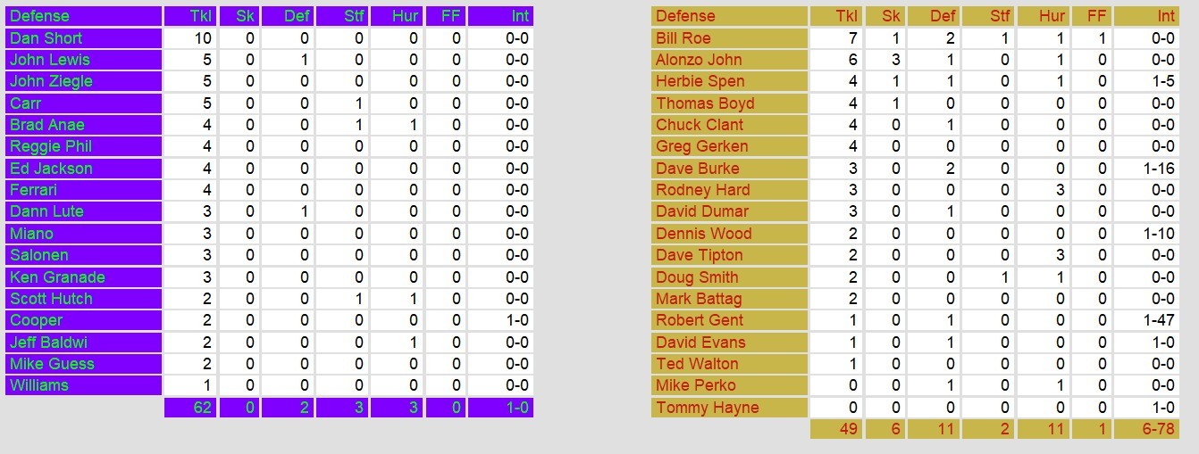 His counterpart, Rusty Hilder, threw for 3 touchdowns himself. However, the Birmingham defense harrassed him into 6 interceptions. New Orleans run game again didn’t help much, with their leading rusher gaining only 27 yards and the team combining for 60.