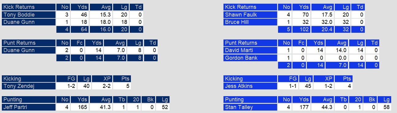 Oakland played well, but they couldn’t keep with Dickerson’s domination. He rushed for 186 of LA’s 199 rushing yards in the game. Oakland also scored two rushing touchdowns, but their leading rushers managed only 54 and 53 yards between them. Quarterback Fred Besana also struggled, throwing 2 interceptions in the game.
