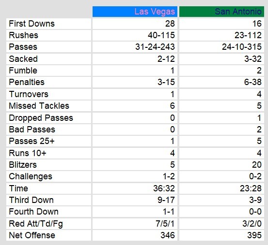 San Antonion scored 3 fourth quarter touchdowns including a pass from Neuheisel to Jerry Gordon. It was his second touchdown pass of the game after throwing 4 interceptions earlier. The loss puts the Gunslingers at 1-15 and favorites for the first pick in the draft.