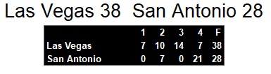 Both teams are on the road next week. Las Vegas visits Arizona and San Antonio is at Michigan.