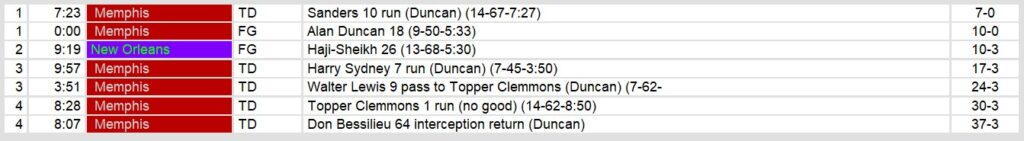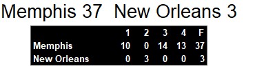 Dateline: Sunday, June 1, 1986. Memphis beat up on beleagured New Orleans Sunday afternoon in the Superdome. Their defense held the Brass to only 9 first downs on 164 total yards on offense. They also returned 2 interceptions for touchdown on the game.