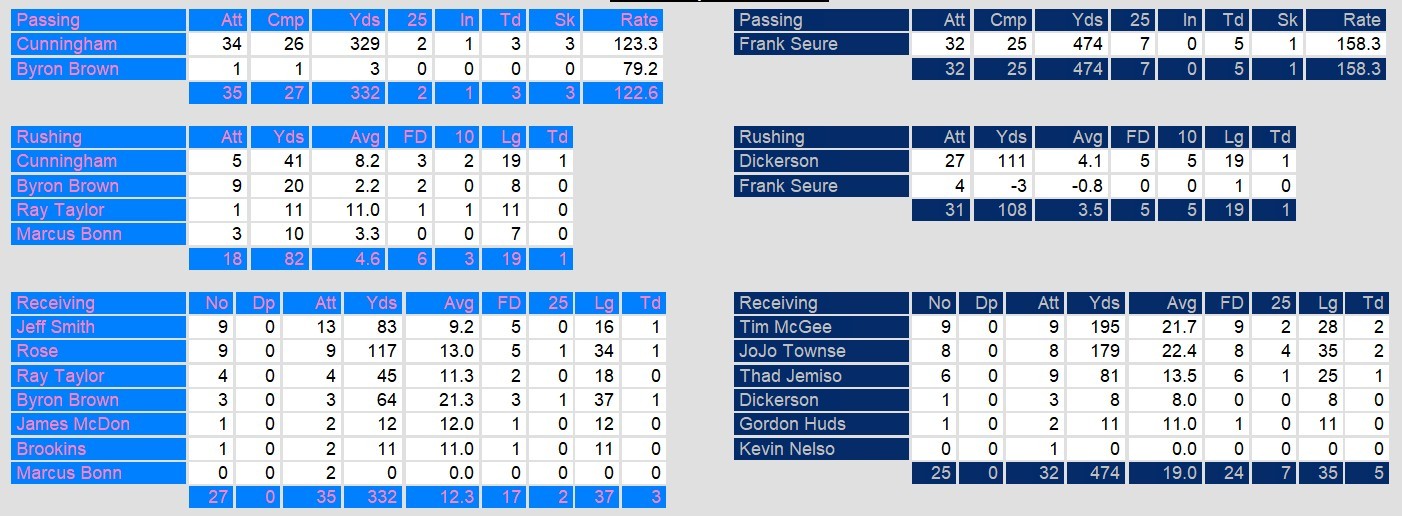 Frank Seurer bested him with 474 yards rushing and 5 touchdowns. Eric Dickerson added 111 yards and touchdown himself. The two players proved too much for an overmatched Vegas defense. While the Ace can hold their heads high with their improvement over last year, they have some significant holes to fill for next year.