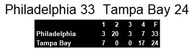 Dateline: Sunday, July 15, 1986. Philadelphia ran out to a 23-7 first half lead and held on to take the victory in Tampa Bay. The two man offensive team of Fusina and Bryant combined for almost 300 yards of offense on the game. Meanwhile, the defense intercepted Tampa 5 times, including a toucdhown near the 5 minute mark of the 2nd quarter.