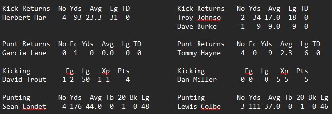 With the Stars run game held under 90 yards rushing, it fell on aging quarterback Chuck Fusina to attempt to carry the offense. While he performed admirably, he showed definite signs of not being able to carry an offense anymore.