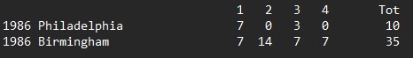 Dateline: Saturday, June 14, 1986. Birmingham’s defense took care of business Saturday afternoon to defeat Philadelphia in the Divisional Round of the playoffs. Quarterback Cliff Stoudt added three touchdown passes Joey Jones and RB Joe Cribbs ran in two touchdowns to handily defeat the Stars.