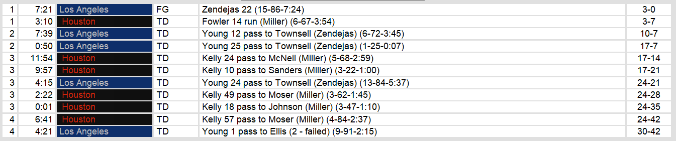 Los Angeles Express: After last year’s disaster, they decided to go in a different direction and give their young quarterback Steve Young some time to develop. It paid off as they bounced back and made it to the playoffs, defeating the Ace in the wild card round.